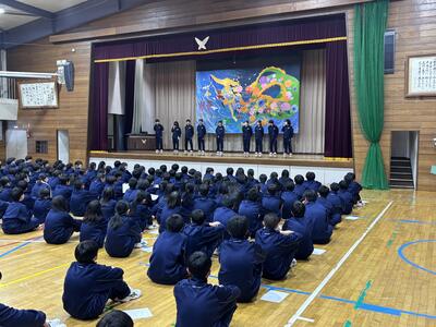 部活動結成集会で部活動への心構えについて、校長先生や部活動係の先生からお話がありました。 ・ルールをしっかりと守ること ・指導者の指示に従うこと ・保護者への感謝の心をもつこと 部活動では多くの人の協力や支えが必要になります。他者を思いやる心を忘れず、周りから信頼されるように、部活動を通して技術だけではなく、心も大きく成長してほしいと願っています。