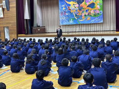 一覧へ 4.28(月)部活動結成集会 投稿日時: 04/30 編集長 部活動結成集会で部活動への心構えについて、校長先生や部活動係の先生からお話がありました。 ・ルールをしっかりと守ること ・指導者の指示に従うこと ・保護者への感謝の心をもつこと 部活動では多くの人の協力や支えが必要になります。他者を思いやる心を忘れず、周りから信頼されるように、部活動を通して技術だけではなく、心も大きく成長してほしいと願っています。