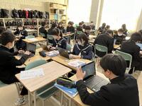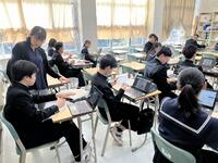 15日(火)北海道教育庁石狩教育局の方が来校し、本校の研究課題「進んで考え、ねばり強く学びに向かう生徒の育成」について研修を深めました。変化の激しい時代に対応できる「思考力・判断力・表現力」の育成が不可欠な昨今。授業においても「自己選択、自己決定、自己表現」のある主体的な学習、他者と協働して「思考を共有、練り合ったり、教え合い学び合いから共に高まったり」・・そうした授業観への転換が重要となっています。その過程で、ツールとしてタブレット端末をどう有効活用していくか、教職員も日々研修を深めています。