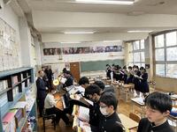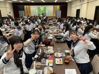 今日は、21日(土)の食育授業を受けてお弁当をつくってくる日。給食前の会話も弾んで、楽しそうです。「自分でつくりました」「おかずが一部自分です」・・・等々、栄養素など考えたお弁当計画にそって、「自分で・・」という生徒が多かったようです。今日は、給食もありませんから、日頃の学校給食のありがたみや、お弁当が必要な時に家族がつくってくれることへの感謝を実感しながら、お弁当づくりに励んでくれたら、とても貴重な学習だと思います・・。
