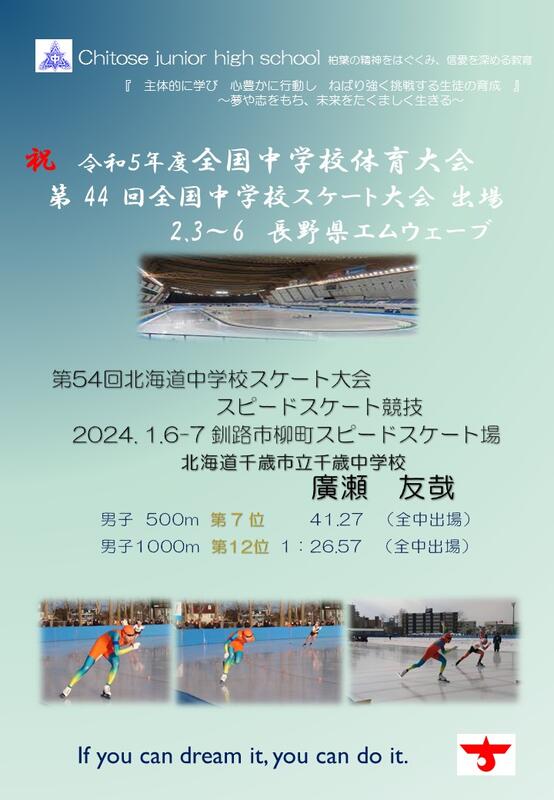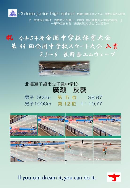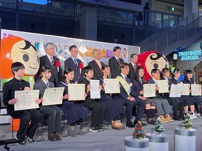 本校からは、令和5年度「少年の主張」全道大会奨励賞受賞の矢部優実さんが「読書を『楽しむ』ことの大切さ」を発表、R5年度全国中学校体育大会第63回全国中学校水泳競技大会において、200m背泳ぎ第8位・100m背泳ぎ18位の森本将太さん、R4年度全国中学校体育大会第43回全国中学校スケート大会において1000m26位・500m11位の廣瀬友哉さんが、その功績を認められ、表彰されました。(顕彰)