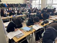 20日(金)の放課後、28名が実用漢字検定に挑戦しました。漢検のホームページには、『漢検へのチャレンジが「勉強が苦手&キライ」というイメージを取り除いて、やる気を引き出してくれるはずです。おまけに毎日学ぶ習慣が身について、基礎学力のトレーニングもでき、目前にひかえた高校入試、そして将来に向けてもしっかり役立ちます。』等と書かれていました。漢検や英検等、「資格を得る」だけでなく、語彙力を身につけることは、「読む、書く、理解する、表現する」といった力を高める効果もあります。ぜひ、自分の今のレベルから、少しずつレベルアップし、合格していく楽しみ(努力が成果につながる実感)を味わえる漢検や英検(実は数検もある)にチャレンジしましょう!