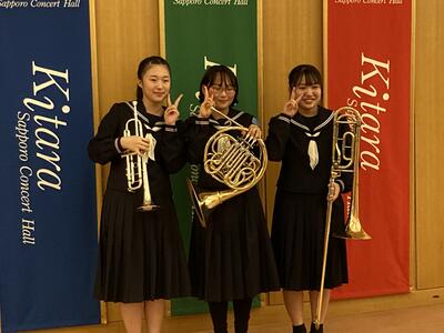 第50回石狩管内中学校音楽発表会【歌唱部門】が、北広島市芸術文化ホール(花ホール)で、開催され、本校合唱部が参加しました。虹、証の2曲を発表し、青葉中学校合唱部15名に本校の8名、向陽台中学校の7名が千歳市中学校合唱部合同で、Nコンの課題曲Chessboardを合唱。会場からもあたたかな拍手をもらっていました。美しいホールで、緊張感の中披露した2曲、みんなで歌った声と心を合わせた合同合唱・・、美しく響くハーモニーと豊かな表現に、「みんなで響き合うって気持ちよさそうだなぁー」とこころが熱くなりました。管内のいろいろな学校が集まった中で、貴重な経験となりました。