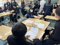 各学級の授業を見てもらった主査からは、生徒達の学びに向かう意欲、「生徒主体の活動や話合い活動」の中で見えてくる「良好な人間関係に裏付けられた学級集団の意欲的な雰囲気」にも、「いいですねー」という言葉をもらい先生たちもうれしくなりました。「自ら学び取る・自律的学習者として・・」「子どもが主語になる授業」ということが教育現場では叫ばれています。「教えてもらう」から「学び取る」へ、「わかったところでとどまらず、できるようになるまで」主体的にチャレンジしていきましょう。