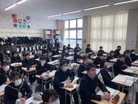 引き続き行った始業式では、「何事に対しても、楽しさを感じながら取り組む1年にしてほしい。周囲の人たちへの思いやりをもった真の楽しさを。」と、学校長から生徒たちにエールを送りました。