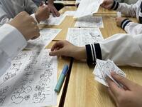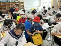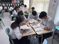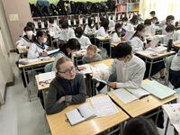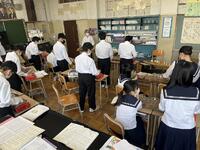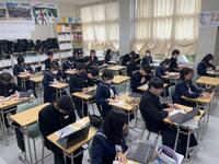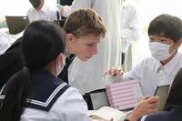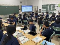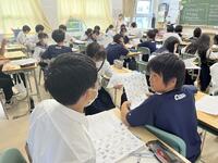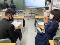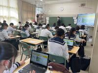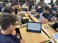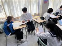 1、国語科では、漢和辞典や「和名作成ソフト」を利用して、留学生徒の「和名」づくりにみんなで取り組んでいました。日本語、英語が入り交じり、対話的な学びから、学習を深めていました。