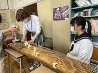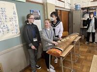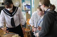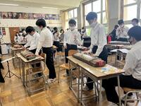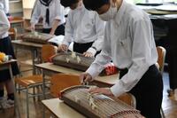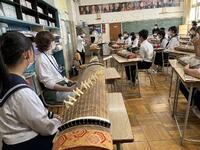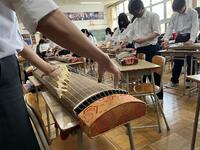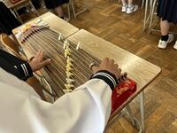 2、音楽科では、和楽器「筝」の授業。トレモロ、押し手等、独特の奏法や平調子と呼ばれる日本的な旋律の「さくらさくら」の演奏を楽しんでいました。