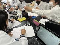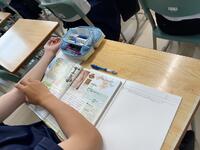 1年生社会科では、西アジア・中央アジアの輸出品の帯グラフから、特徴的な点、考えられることを書き出し、ジャムボードで、資料の読み取りについて、「思考・考え」を共有していました。こうした思考の練り合いから、「社会科特有の見方・考え方を働かせ、思考を練り合うことで、より理解や考えを広げ、深めることができるんだなぁ・・」と感じました。