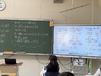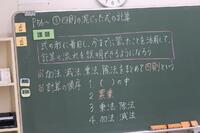 1年生の数学の授業は、「四則の混じった式の計算」判断し、表現し、説明できるようになろう!という授業。四則計算、正の数負の数+-、( )や{ }、累乗の計算・・・、「計算ミスの落とし穴がいっぱいの問題」を(どこから先に計算していくのか・・)順序立てて、計算過程を説明し、他者に伝える(表現力)、活用する力を身につける対話を重視した授業でした。