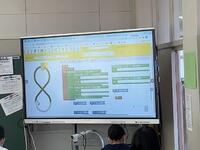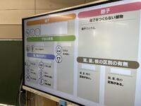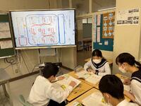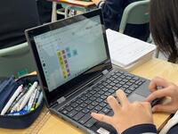 技術のプログラミングの授業では、応用問題にチャレンジしていました。スクラッチで、条件に沿った車の運転になるようプログラミングしていきます。ゲーム感覚で楽しみながらプログラミングについて学んでいました。