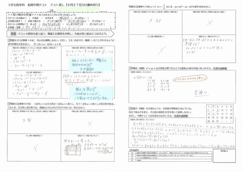 「+-の符号を計算途中でミスしたり、計算過程を書いていなかったり、分数の処理でつまづいたり、暗算したけどケアレスミス・・」自分のミスするパターンは意外と「基礎・基本」となる部分です。「基礎・基本」のマスターには、やはりドリル的な繰り返し学習が有効なので、「自分のできていること、つまずきやすいところ」を理解し、対策を講じましょう。「教え合い学び合いの中で、つまずき箇所を指摘してあげること」は、教えてもらう人にとっても、教える側にとっても、すごくプラスになります。「対話的・協働的に」学びましょう。