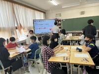 この単元では、タブレットのジャムボードを使って、「読み解いた一人一人の思考を端末上で共有」しながら、思考を交流し、「また新たな考えや発想、深い読み取りに・・」というねらいがあるように見えました。国語科でのICT機器の活用は、教科の特性上、なかなか難しい面もあるのですが、「思考・判断・表現力」を高める授業に感じます。