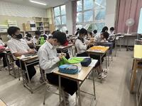 1年生が、裁縫 「ポケットティッシュカバーづくり」に取り組んでいました。本校の生徒の「ものづくり」や「作業」の際の集中力は、とても高いものがあります。丁寧な作業、集中度、作業工程のや作業方法の理解、進捗状況のチェックや確認等、社会に出てから大いに役立つものも多く、実技を伴った教科の充実、パフォーマンスとして表れるその教科特有の表現力・想像力に期待しています。