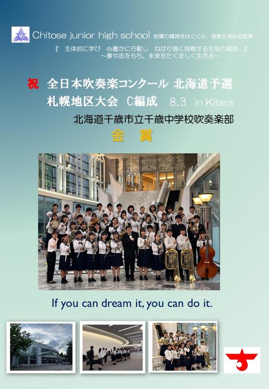 これまでバンドをけん引してきた3年生たち、本当にお疲れ様でした。次のステージを見据えてください。1,2年生含め千歳中学校吹奏楽部の新たな伝統を創った吹奏楽部のみなさん、さらなる成長と輝きに期待しています。来場していただいた多くの方々、子ども達の心のこもった演奏を楽しんでいただけたと思います。今後とも、子ども達の成長と躍動に応援をよろしくお願いいたします。