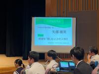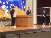 また、各学年を代表する生徒の作文発表もありました。どの代表生徒たちも、前期の反省と後期に向けての意気込みを力強く発表していました。