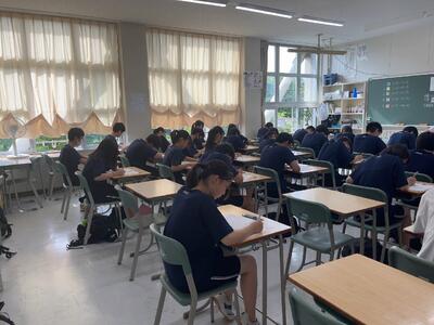 6月7日(水)5時間目に1学年校外学習オリエンテーションを実施しました。校外学習の実施日は7月14日(金)となります。それまでに各班で主要研修先、昼食の場所、各班での研修先、移動手段など多くのことを決めていかねばなりません。他者との協働、意見交換、そして決断を通じて大きく成長していくことを期待しています。
