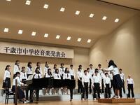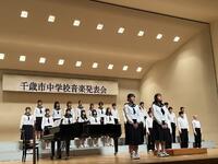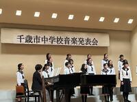 千歳市中学校音楽発表会が千歳市民文化センター北ガス文化ホールで開催され、本校からは、3年2組の学級合唱、青葉中・向陽台中・千歳中の合同による合唱部が出演し、表現力豊かな合唱を披露しました。市内各校のそれぞれの学級の特色を活かした美しいハーモニーは、観客を魅了し、素晴らしい発表・交流会となりました。