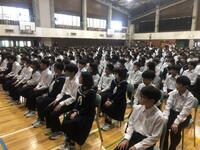 10月6日(金)5時間目に前期終業式を実施しました。前期を振り返りとコロナの影響で今まで活動できなかったことが復活し、コロナ禍前の日常が数多く取り戻せました。各学年代表生徒の前期を振り返っての作文発表の中でも学校行事に対する反省が数多く述べられていました。