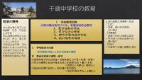 「主体的に学び 心豊かに行動し 最後までやり切る生徒の育成」を重点に、教職員が一丸となり「チーム千中」で取り組んできた令和4年度も集大成の時期を迎えます。これまで、「あたり前だった日常」が大きく変わり、大人が知っていた知識を子どもたちが理解する(記憶再生型の学習)だけでは通用しない時代がすでにやってきています。先が見えない感染拡大、温暖化や異常気象、Society 5.0に象徴される社会の大きな変革。かつて経験したことのない変化の激しい未来をたくましく生きていくために、大切なことを以下のように考えています。