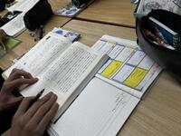 写真7~9:国語では、故事成語をイラストとともに描いていました。なかなか、言葉とその意味、どんな出来事から生まれてきたか等々、暗記というわけにいかないので、こうした五感を働かせた「活動・作業」を通して、理解や活用につなげます。「・・・なの、そうじゃないの???」疑心暗鬼のイラストには、笑ってしまいました・・。