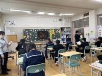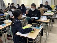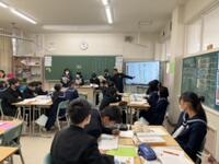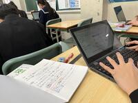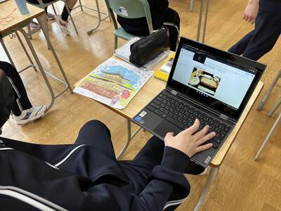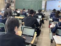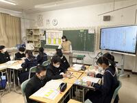 ①国語では、グループ発表による、登場人物の心情や作品から得られる考え方、生き方、自分なりの想いや感想を共有し合った後、学習の振返りとして、Googleフォームを使って、学習後の感想をそれぞれが整理していました。個の読み取りを、集団で交流し合い、広げ深める。そしてまた、個にかえっていく・・。「みんなで学び合うことの楽しさ」、協働的な学びです。