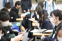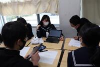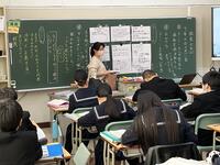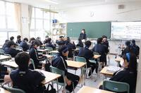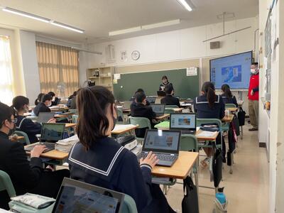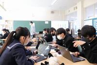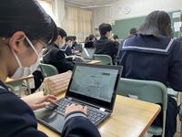 本校では、「進んで考え、粘り強く学びに向かう生徒の育成」を研究主題に、教科研究を進めています。学習指導要領が求める「主体的、対話的で、深い学び」を可能にする授業改革、ICTも利活用した「個別最適な学びと協働的な学びの一体的な充実」を図る授業改革を進めています。