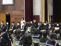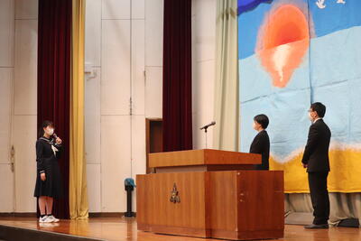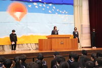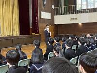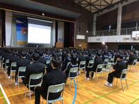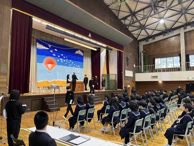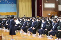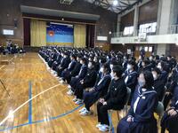 12月23日(金)冬休み前集会を実施しました。生徒会からは、冬休みの過ごし方や学習に関することなど、冬休みを有意義に過ごすために大切なことを数多く伝えてくれました。期間は短い冬休みですが、心も体も上手くリフレッシュして冬休み明け元気に登校できることを期待しています。
