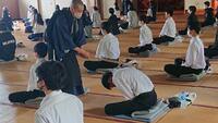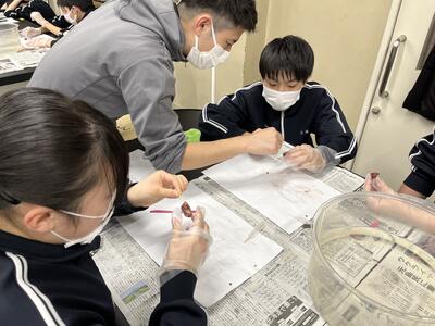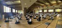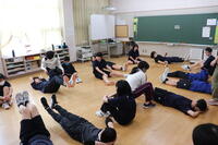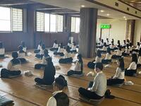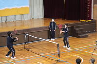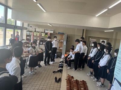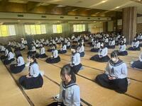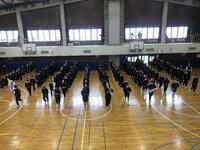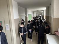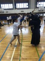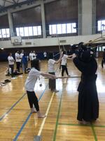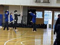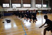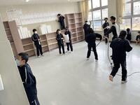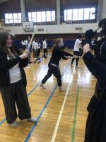 5、6時間目は2学年の生徒たちと学年体育大会を実施しました。フリースロー大会、リレー、長縄と大いに盛り上がりました。最後は、予定になかったバレーボールの試合まで行い、5、6時間目も怪我なく楽しむことが出来ました。放課後は、剣道体験をしました。実際に面をつけての実践はとても楽しかったようです。