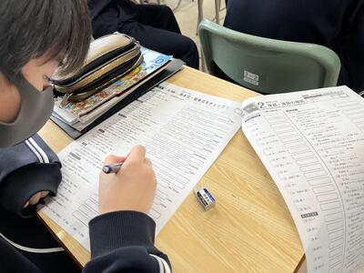 【3年生:進路実現直前の学年末テストに真剣に取り組んでいます】