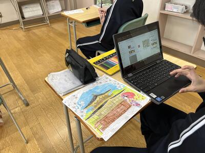 黙々とクリエイティブな作品作りに取り組む様子に、美術・芸術面での「表現力の豊かさ」を感じます。国語・数学・・・といった教科も大切ですが、感性を磨く、強みを伸ばす・・といった面で、実技・技能教科における表現力も欠かせません。様々な図案や動植物等、作品作りの助けとなるためにネット検索も活用します。