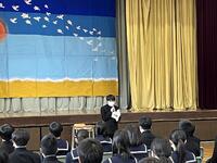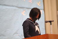『本日はお忙しい中、私たち千歳中学校の生徒のために沢山のことを教えていただきありがとうございます。DVDを見て、改めていじめの恐ろしさを知ることができました。それと同時に、一人一人の個性を受け入れ、尊重していきたいと思いました。これからは、今日教わったことを生徒一人一人が心に留め、しっかりとコミュニケーションをとって、相手を思いやることを心がけたいです。