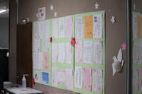 3年生の「修学旅行新聞」の掲示物の上に、合格祈願の絵馬が飾られ、面接練習や入学試験願書の作成を目にする時期となりました。自分自身が希望している高等学校の「スクールポリシー」に合致した人物であることをアピールする「自己推薦」初年度。「◇◇を意識して学んできて、□□□な力がつきました。将来〇〇と考えていて、高校では△△について頑張りたいと考えています」と述べている自己推薦文や面接の答弁が、『その高校の打ち出しているスクールポリシーに合致している』ものであり、高校が「この生徒なら高校で個性を伸ばしてくれるだろう」と納得させる『文書と表現』は、そう簡単なものではありません。何度も推敲や練習が必要となるでしょう・・。