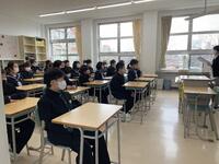 本日の土曜授業では、千歳市人権擁護委員協議会の中島会長(元千歳中学校校長)による人権教室を行いました。コロナ禍を配慮し、各教室へのDVD配信・視聴とワークシートで学習を進めました。アニメでも人気のある『聲の形』の実写版のようなDVDから、多くのことを考えさせられました。どのクラスもしっかりDVDを見て、考え、ワークシートに記入していました。