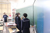 生徒達が、今までの学習で培った教科特有の見方・考え方を働かせて、「課題の解答や自分なりの意見・考えにたどりつく」、「意見・考えを他者との対話や協働の中で・・」・・といった授業づくりのイメージを千歳中学校の日々の授業研究で取り組んでいます。1年生の英語科で「日本語での自己紹介後に既習事項で自己紹介をしてみよう」とか、数学科で、「解答方法についてわかる人も分からない人も協働で、教え合い学び合い、作戦会議を持つことで、自ら学び取ったり、わかるように伝えることでより確かな理解につながったり・・」といった授業も、子どもたちが自ら学び取る授業にする工夫が感じられます。