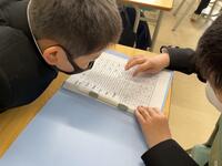 国語科や言語活動場面での図書館等の有効活用がよく言われます。2年生国語では、本校の学校図書館司書、木村さんの協力を得て、「図書館を利用した“ 調べ学習” 」にチャレンジ。一人一人に渡されたミッションカードには、「絶滅のおそれのある日本の野生生物において・・・・・環境省レッドリスト2020掲載種数表において、絶滅危惧種とされる日本の野生生物の種類数は???」等といった、ちょっと難解なミッションも・・。図書の日本十進分類法の表とにらめっこしたり、司書さんの図書分類の説明等をヒントに、課題解決に取り組んでいました。