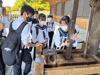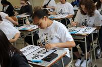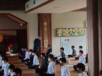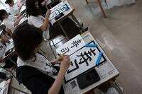 3,4時間目は「書写」の授業に取り組んでもらいました。姿勢から筆の持ち方、心の持ち様等も基本を伝え、墨汁に悪戦苦闘しながらも、見る見る上達していました。