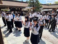 「教科書や本でしか見たことなかった場所や風景を自分たちの足で実際に歩き、見聞きして、体験して・・。素晴らしい経験や学びとなったし、コミュニケーション力もついた・・いい想い出になった・・」自主研修レポート発表会を見せてもらいましたが、時間をかけずに、文字は少なく、「伝わる」スライド製作のうまさ、(書いてあることを読まずに自分のことばと感想で伝える)プレゼン力の高さに感心しました。スライドのバックを「きつねや竹」等、京都にあった手書きのスライド背景にしている人もいました。様々な教科での学習や1,2年生での研修まとめと振り返りの習慣が生きていると感じます。おそらく、自分が社会に出ても、様々な製品や仕事上のプロジェクトの説明等、自らの考えや発想、企画等をプレゼンする機会が出てきます。小中学生期のこうしたプレゼン力の育成が、キャリアの視点でも大切だと、改めて感じました。