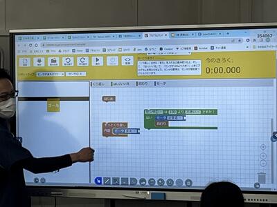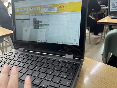 2年生技術「プログラミング」の授業では、車の発進、ストップ、右左折等、動きを制御するプログラミングのフローチャートを作成して、「プログラミン」を学ぶ、学習を行っていました。情報通信リテラシシーといわれる、情報教育の基礎・基本や情報モラル(扱う上での注意事項やモラル、危険性等)についても並行して学んでいかなければ時代です。プログラミングゲームソフトを活用して、楽しく学びます。