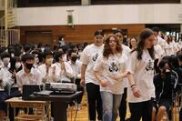 1992年から続く、千歳市の姉妹都市交流事業、アラスカ州アンカレッジよりミアーズ中生徒が来校しました。今日30日は、千歳中学校で、生徒24名、教職員4名を受け入れます。生徒会企画の歓迎集会では、ミアーズ生徒は流ちょうな日本語で自己紹介し、みんなを驚かせました。本校生徒会の運営は、英語と日本語の二本立てのプレゼン。辻川生徒会長の歓迎の挨拶や生徒会のみなさんの素敵なスライドショーにより千歳市を紹介してくれました。ミアーズ中学校からも、日本語でのミアーズ中紹介で、両校の交流がスタートしました。