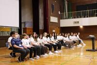 集会の中での、剣道部による演武や書写の授業、大縄跳びやリレーなどの体育にもチャレンジしてもらいました。異文化理解、国際理解といった面で、とても意義のある姉妹都市交流、明日は、千歳中に6名の生徒が、学級に入り、日本での授業を一緒に体験します。