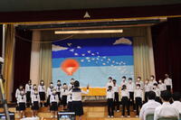 今日の放課後、合唱部は、3年生の引退式を行いました。お世話になった3年生に歌を送る1,2年生、それに応え、2人の3年生で、素敵なハーモニーを響かせていました。3年生が歌った「群青」という曲は、福島第一原子力発電所から半径20km圏内に位置する福島県南相馬市で生まれました。 南相馬の子どもたちが東日本大震災によって離ればなれになってしまった仲間を思って、つぶやいたり、書き留めた言葉を、中学校の先生がまとめ、曲をつけてできた作品だそうです。津波、原発事故によって離れ離れになってしまった仲間、友のことを思い、卒業期には、ちょっと切ない思いと共に歌い継がれている曲です。歌声だけでなく、その曲に込められた思いや感情も伝わってくる合唱の素晴らしを感じました。「群青」、特に素敵でしたよ。