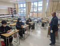 2年生は、クロームブックの持ち帰り、自宅待機生徒への受け渡し等を行い、本日から5教科を中心にオンライン授業を行っています。課題を提示し、子どもたちの理解の状況を確認しながら、画面共有や動画配信等を駆使して学習しています。自宅療養生徒も、オンライン参加が可能であるため、参加生徒が、学級100%に近いことは、皮肉な現象です。義務教育段階の発達と資質能力の獲得において、「対面」「協働」での学びが欠かせないものであり、第8波の感染拡大を封じ込め、後期の学びや自己実現の取り組みを充実させていかななければと考えています。