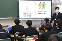 Which do you like better,soba or udon? 2年生の英語の授業を特設授業として研究授業が行われました。隣の教室に動画配信して、教室内の人数を制限しながら教職員が参観。北海道教育長石狩教育局からも指導主事が参加して、今求められる授業像について教職員も学びを深めました。電子黒板での課題提示も活用しながら、多様なペア学習やクイズ形式での活発なコミュニケーション活動を通して、表現し、伝える力の基本となる「~の方が好きだ」「~が一番好きだ」という表現方法を学んでいました。英語もコミュニケーションツールですので、「自分や他者の意見や考えを伝えられる」実践的経験を通して、力がついていきます。失敗やわからないことを恥ずかしがったり、臆(おく)することなく対話的な学習を深める姿に、2年4組生徒の学びに向かう力のすばらしさを感じる授業でした。