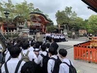 伊丹空港に到着してすぐバスで向かった伏見稲荷大社では、心配された雨にあたることもなく、グループごとに千本鳥居を見学したり、おみくじを引いたりなど、思い思いの時間を過ごしました。この後宿泊先に向かいます。