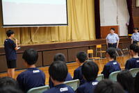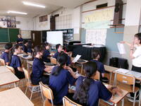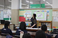 6校時の「自分を大切にする教室」では、紫明女子学院の方を講師に招いての全校道徳を行いました。