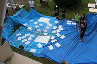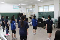 夏休みに入り、午前中から部活動を行なうことができています。美術部は、色が入った水風船を画用紙に向かって落下させ、出来上がった模様を楽しむ作品づくりを行っていました。吹奏楽部、合唱部共にコンクールに向けて練習に熱が入っています。それぞれのパートに分かれて練習した後に、合奏を行い細かな点の修正を行っていました。