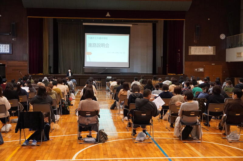10月27日に進路説明会を実施しました。今年の3年生は、受検内容が大きく変わる年に当たり、各高等学校の合格ラインにも大きな変更があることなど多くのことを説明しました。受験に向けて頑張ることを期待しています。