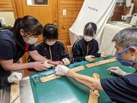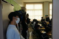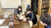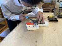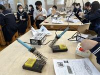 技術科では、電気回路をハンダ付けし、手回しラジオを作成していました。ラジオを聴く機会があまりないこともあってか、ものづくりに夢中になっていました。「はんだ付け」の技術は、先人の技術の「伝承」ですね。自家発電式の手回しラジオなので、災害時にも役立ちます。故障や断線のない、いいラジオに仕上げてください。