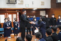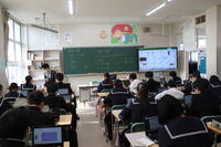 10月25日(火)5時間目。後期認証式を実施しました。新しい生徒会役員が認証され、本格的に千歳中学校の顔となり良き伝統を引き継ぎながら新しいことにもチャレンジして欲しいと思います。各教室内では、体育館の様子を電子黒板で視聴しました。