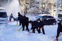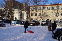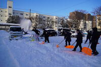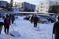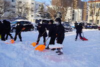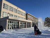 昨夜の暴風と20~25㎝の積雪、風による吹き溜まりと、JRや交通障害と早朝にかけて心配されましたが、何とか早めに登校してきた生徒たちの「僕もやりますよ・・」の声に助けられ、学校は正常に動いています。5時前後は歩道もない状態でしたが、6時には、歩道の除雪車も入り一安心。ところが、期待を込めて待っても校地内の除雪車は入らず、業務主事さんや先生方、早めに登校してきた生徒達、みんなで除雪です。先生たちの車も埋まりそうになりながら、生徒たちの若い力もあってすっかりきれいになりました。